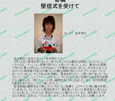 幼児洗礼を受けてた翔太が、高校生になって堅信を受けた2005年、月報「コイノニア」10月号に投稿してくれていたのを思いだし、探し出しました。