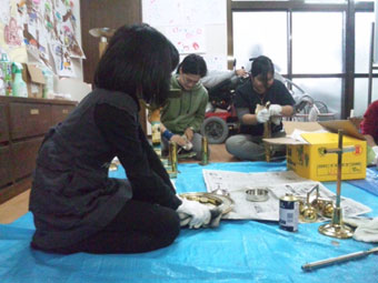 お食事後はみんなで大掃除。久々に聖器みがきをしました。