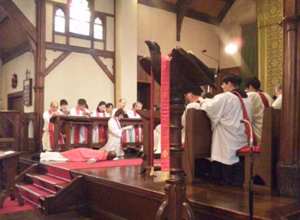 この式では必ずする儀式なのだと思い込んでいたのですが、聖公会の按手式では珍しいことだったそうです。