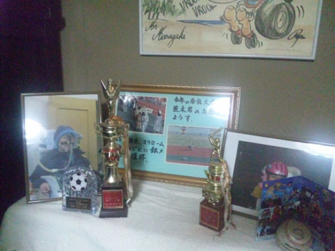 写真は仏壇の横にあった荒木さんメモリアルコーナー。