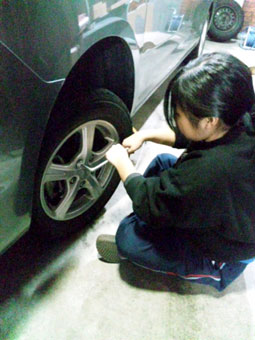 もはや有名になってきましたが、我が家のタイヤ交換は真綾の担当です。