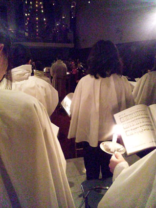 聖マリア教会では毎年、クリスマスイブのキャンドルライトサービスに「9つの日課と唱詠晩祷」を行います。