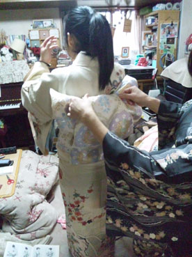 1月6日(日)朝からバタバタ着付けしてます。和馬と伸はソニック新年会。また二班にわかれて別行動。