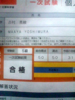 まあ、まだ5級やしたいしたことないかもしれんけど、満点は嬉しいな♪