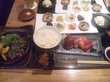 経営するウィズユーの西村会長からいただいた誕生日ランチチケットで、この、8種のおばんざい、ビーフステーキ、お造り、手作り蒸したて豆冨、コーヒーもいただいてしまいました。