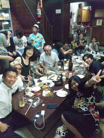 いつものように西湖堂印刷ガレージにゴザをひいてみんなでワイワイ大宴会!