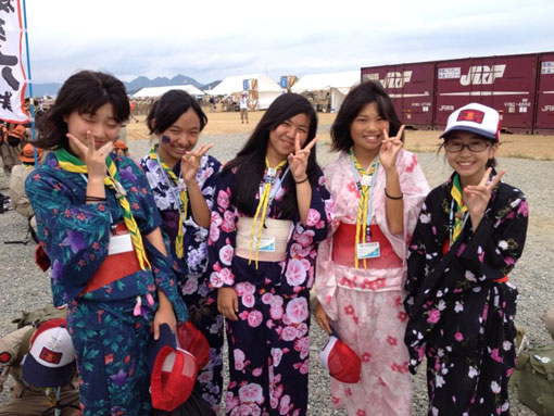 京都5隊女子スカウトたちは申し合わせてゆかたを持参。