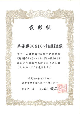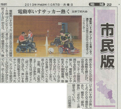 10月6日の「電動車いすサッカーフレンドリー杯2013」の成績です。