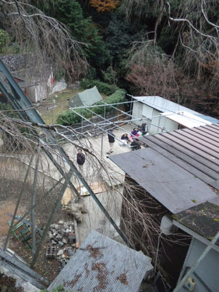 毎年イースターの早朝に大文字山に登って、降りてくるルートの道沿い、真綾の学校ノートルダム女学院の真上、九月の台風18号で路肩がくずれて車が河原に転落したところです。