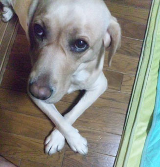 それまで、頭のよさをかわれて繁殖のほうにまわっており、すでに1度出産済み(7頭の子供がおり、間もなく介助犬デビュー予定。父親もイエローなのに不思議とこどもすべて黒!現役使役犬としてがんばってるそうです)。